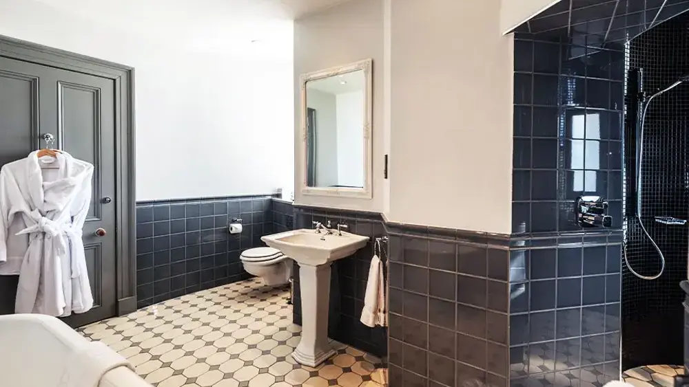 This suite has a spectacular power shower within a turret as well as a large bathroom with bath. There is also a lounge area where you’ll find a welcome Glen Garioch dram from our local distillery waiting for your arrival.